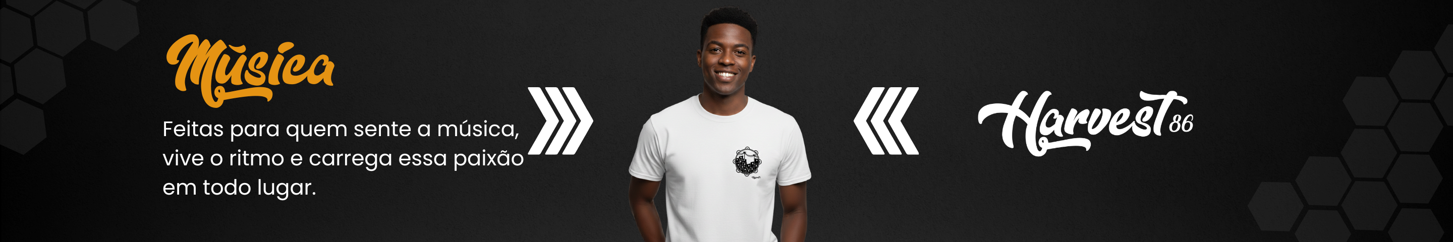 A categoria Música da Harvest celebra o samba, os ritmos brasileiros e a vibe musical que conecta pessoas, histórias e momentos. São peças casuais, cheias de atitude e criatividade, feitas para quem sente a música, vive o ritmo e carrega essa paixão no visual.